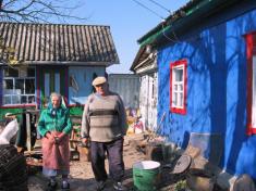 На фото: Е.И.Рекун и И.П.Жабинец на новом подворье.