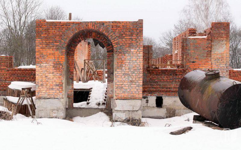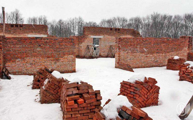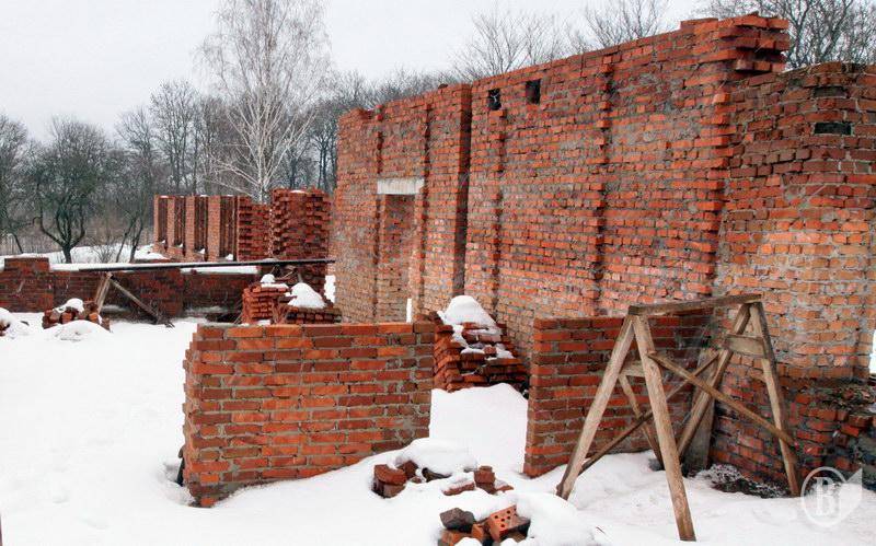 Строительство стоит около полугода. Строители уже вывозят из площадки плиты и кирпич. Объясняют, что это – их. Завезли слишком много.