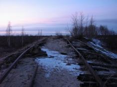 Йду по рейках у бік Києва. Через півкілометра за станцією вліво від магістральної залізниці відвертає колія. Одного погляду на неї достатньо, щоб підтвердити слова залізничника – рейки заіржавіли, по них дійсно вже років з вісім ніхто не їздив.