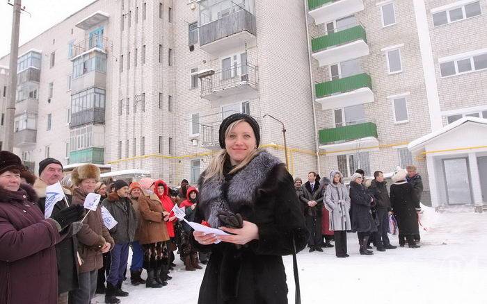 Наталія Андріївна пояснила, що житло надається громадянам у відповідності до програми уряду по виходу з кризи в будівельній галузі. "У відповідності з тим договором, який уряд укладав з будівельними компаніями, мали добудувати будинки до 25 грудня 2009 року. Будівельники виконали свої зобов'язання, а уряд виконав свої ".