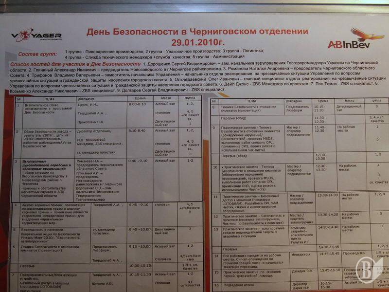 На Чернігівському відділенні ВАТ «САН ІнБев Україна» відбувся «День безпеки». Цей проект є частиною глобальної соціальної ініціативи «Better World» компанії «Anheuser-Busch InBev».