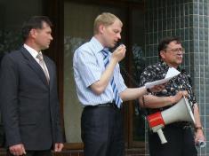 Першим до присутніх звернувся Володимир Мазуренко – голова профспілкового комітету підприємства. У своєму виступі він озвучив список численних порушень, що були допущені роботодавцем за останній час, а це порушення Галузевої угоди; Кодексу законів про працю, Закону України “Про оплату праці”, положень Колективного договору про оплату праці і преміювання працівників“ та “Правил внутрішнього трудового розпорядку” ВАТ “Прилуцький завод “Білкозин”.