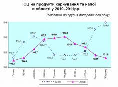 На споживчому ринку області в жовтні 2011р. ціни на продукти харчування та напої знизилися на 0,5%.