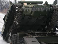 За «Булатами» прибули військові трейлера МАЗ-737. Саме вони доставлять бойові машини до Гончарівського, де дислокується танкова бригада.