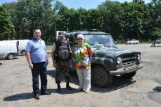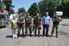 24 червня на Схід рушила вантажівка з продуктами харчування від Благодійного фонду Анатолія Мирошниченка «Благовіст». Якихось вісім годин дороги – і бійці 41-го батальйону розвантажили їжу на автостанції у Боровій (із зрозумілих причин делегацію з Прилук до військового табору не пустили). Олексій зустрівся із мамою, а також прийняв у подарунок від фонду рації та ліхтарики.