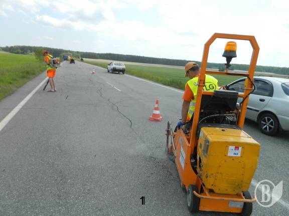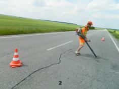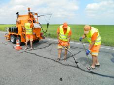 Служба автомобільних доріг у Чернгівський області для підтримання доріг в належному стані застосовує технологію заливки тріщин.