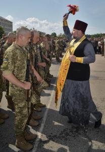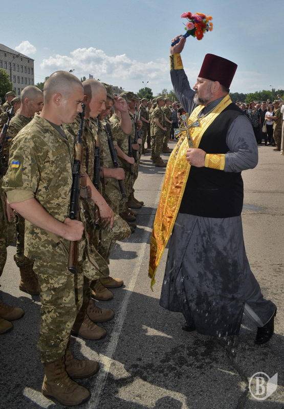 После завершения церемонии принесения Военной присяги, которая прошла на строевом плацу, священнослужитель местного храма отец Ярослав благословил молодых воинов на ратную службу и оросил их свяченой водой.