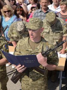 «На протяжении нескольких недель вы успешно усвоили курс начальной военной подготовки, прошли испытания с оружием в руках, с чем я вас и поздравляю. Как сознательные граждане и настоящие патриоты, в трудные для Украины времена вы взяли на себя ответственную миссию по защите ее территориальной целостности и неприкосновенности, – отметил генерал-майор Олег Микац. – Надеюсь, что вы станете достойными продолжателями славных традиций разных поколений защитников нашей Отчизны».