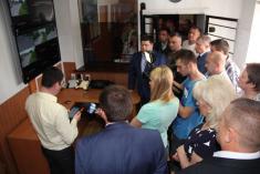 В дежурную часть Прилуцкого отдела 14 июня в.и.о. начальника ГУНП в области полковник полиции Эдуард Алехин и его заместитель Александр Потапенко с городским головой Ольгой Попенко презентовали, как работает система.