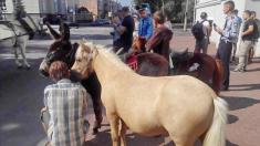 Протестуючі проти вартості проїзду в 4,50 грн привели до Чернігівської міськради коней і поні. З ними також неповнолітні.