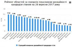 Через несприятливі погодні умови у поточному сезоні середній показник врожайності культури нижчий минулорічного показника на 0,64 т/га (на звітну дату у 2016 році урожайність становила 4,92 т/га).