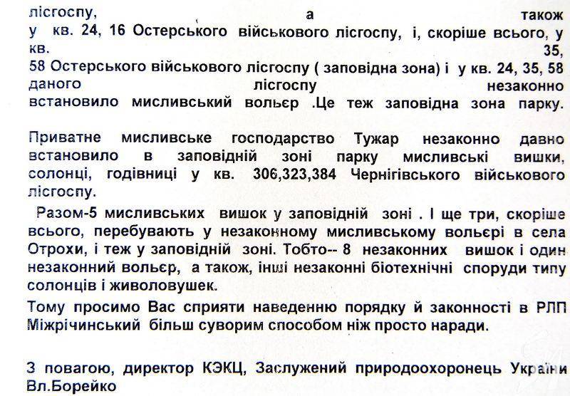 Листи щодо знесення тих веж і вольєрів ДЕІ направила мисливським господарствам по результатах перевірки семи з них. І якщо в одних зреагували, то в інших навіть не відповіли нічого.