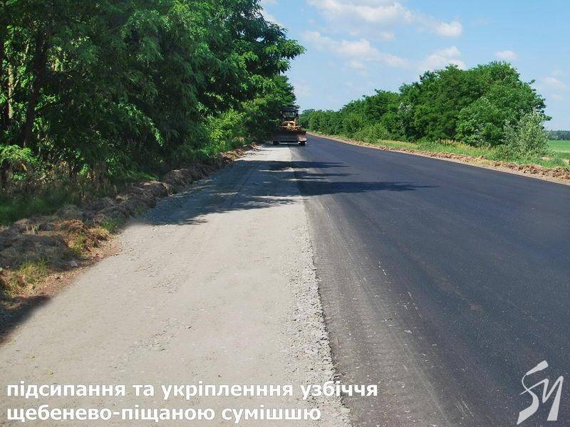 Укріплюють узбіччя дороги на Мену
