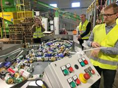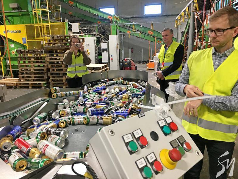 Цікаве і важливе для країни підприємство - пакувальну станцію нам показали після відвідування Центру переробки відходів. В Естонії, купуючи напій в скляних, пластикових пляшках та в баночках з алюмінієвої фольги, ви платите за них 10 центів.