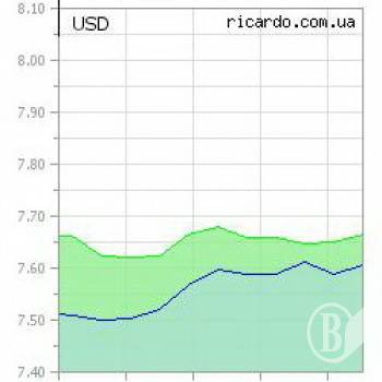 Предложения коммерческих банков по покупкн долларов колеблются в пределах 7,45-7,66 грн. /дол., по продаже – 7,64-7,73 грн. /дол.