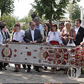 Интересно было наблюдать, как иностранцы учились вышивать на украинском полотне. Многие делали это впервые. Гостям продемонстрировали гордость украинского народа — “Рушнык национального единства” — полотно длиной 9 метров, на котором вышивали жители всех областей Украины.