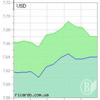 Пропозиції комерційних банків з купівлі долара коливаються в межах 7,58-7,66 грн./дол., з продажу – 7,655-7,690 грн./дол.