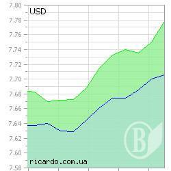 Пропозиції комерційних банків з купівлі долара коливаються в межах 7,640-7,755 грн./дол., з продажу – 7,76-7,82 грн./дол.