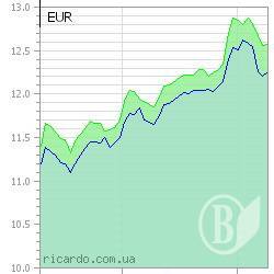 Предложения банков по покупкеи евро колеблются в пределах 11,95-12,36 грн. /евро, по продаже – в пределах 12,40-12,69 грн. /евро.