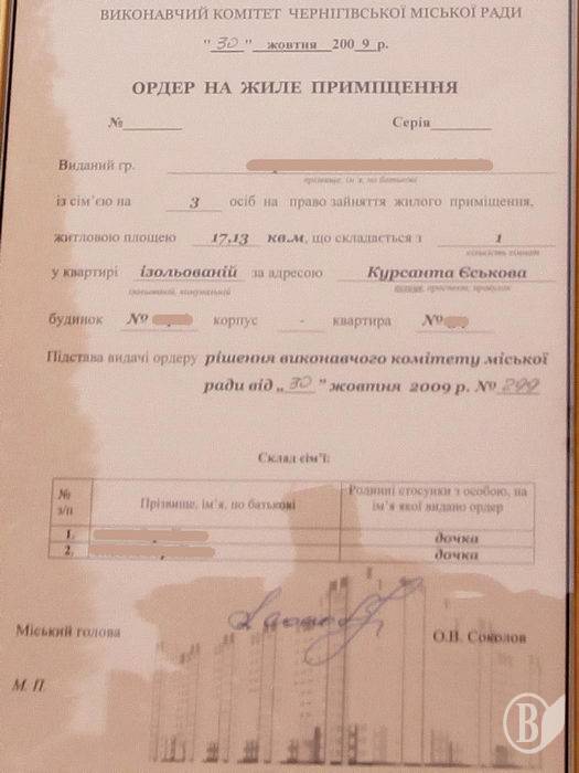 30.09.2009 321 квартиру отримає для розподілу Чернігівський виконком