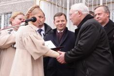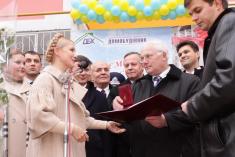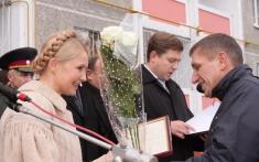 Вона вручила почесні грамоти і подяки Кабінету Міністрів керівнику, головному підряднику, голові правління відкритого акціонерного товариства "Домобудівник" Анатолію Роговому, працівникам цього підприємства та інших будівельних організацій.