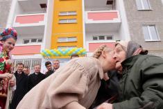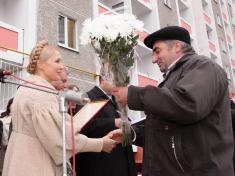 Глава уряду у своєму привітальному слові зазначила, що багато цих людей чекали квартири, стояли на чергах близько 30-ти років, дехто більше 30-ти років, таких чи не третина. Тому ця подія є дуже радісною для них, і Ю.Тимошенко була щаслива розділити з ними цю радість.