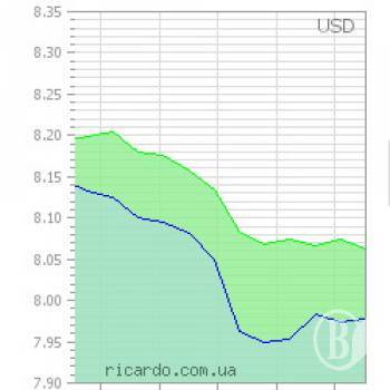 Пропозиції комерційних банків з купівлі долара знаходяться в межах 7,93-8,01 грн./дол., з продажу – в межах 8,04-8,10 грн./дол.