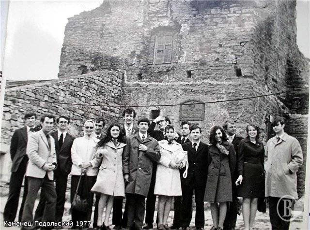 Я говорив на семінарі про роботу свого КСТТ, Сергій виступив з пропозицією про створення таких КСТТ при міськкомах і райкомах комсомолу. Потім нас повезли до Кам'янець-Подільського, де ми всі сфотографувалися під баштою Олекси Довбуша (на фото Сергій другий зліва, а я третій справа). Погодьтеся, що я, старший його на 20 років, на знімку виглядаю молодшим (що означає, бути на гребені успіху!)