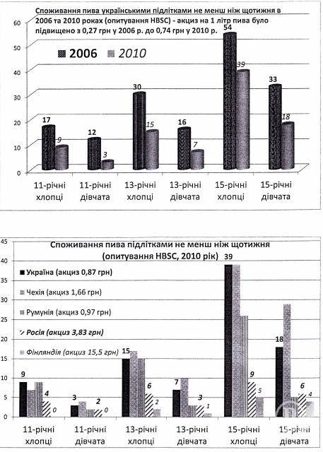 У 2006 році українські підлітки посідали перше місце в Європі зі споживання алкоголю, але завдяки підвищенню акцизу на пиво в 2,5 раза в 2009-10 роках, споживання пива серед підлітків в Україні суттєво скоротилося, хоча і залишається дуже високим.