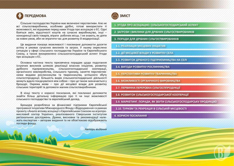 Брошура розроблена Сіверським інститутом регіональних досліджень у співпраці з Чернігівським Центром перепідготовки та підвищення кваліфікації та Українською асоціацією аграрного бізнесу (УКАБ) за фінансової підтримки Європейської програмної ініціативи Міжнародного Фонду «Відродження».