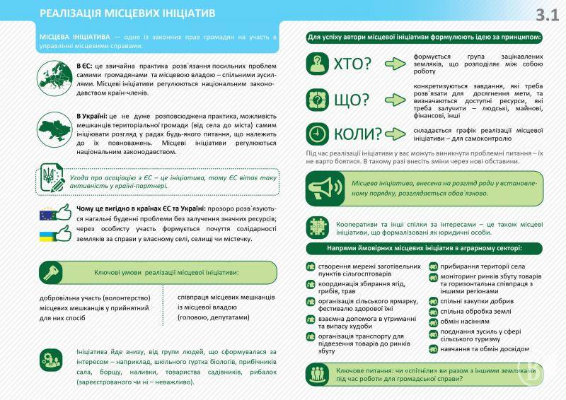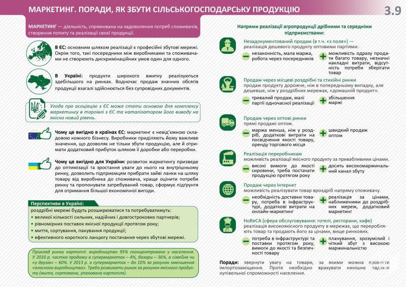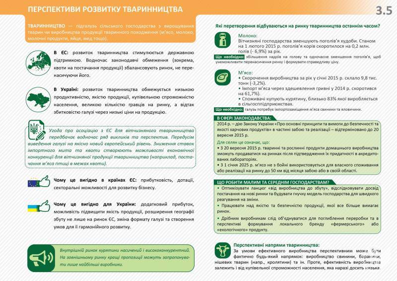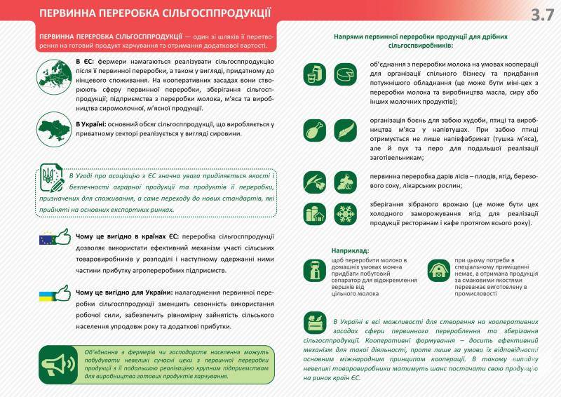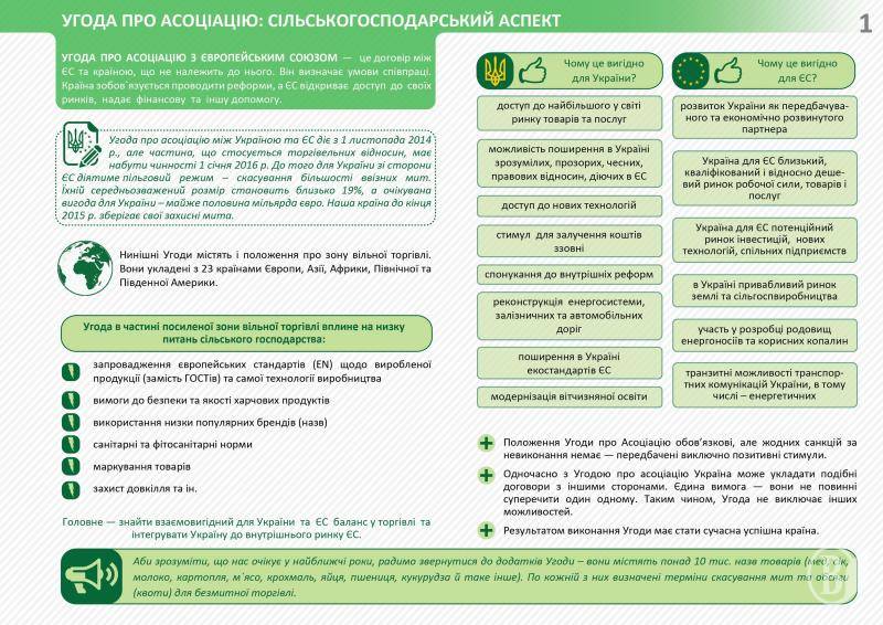 Рекомендації, оформлені у вигляді брошури з інфографікою «Угода про асоціацію: поради для дрібних сільгоспвиробників», викладені простою мовою із застосуванням схем і графічних позначень та розміщені в мережі Інтернет.