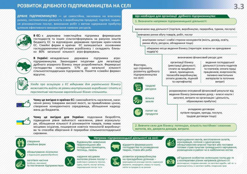 Видання демонструє потенційні можливості для дрібних українських сільгоспвиробників. У ній зроблена спроба співставлення ситуації у сфері сільського господарства України та Європейського Союзу, а також окремо розглянуто сільськогосподарський аспект Угоди про асоціацію з ЄС. Надаються також рекомендації місцевій владі з розвитку сільських територій та допомоги дрібним сільгоспвиробникам.