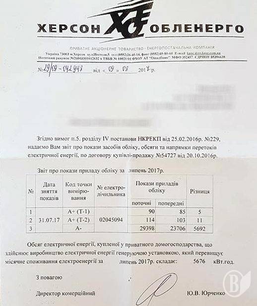 При цьому власне споживання домогосподарства – 400 кВт-год на місяць. Рахунок за електроенергію в липні склав 0 грн.