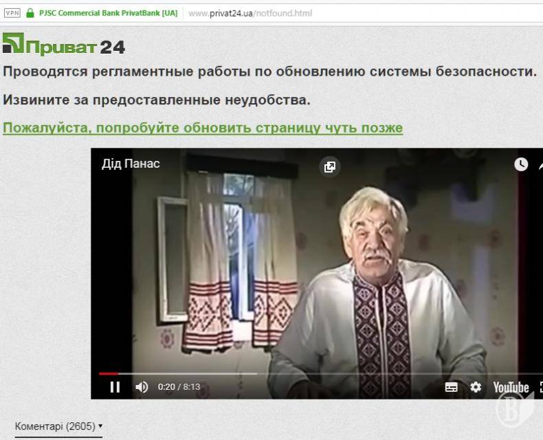 Сьогодні, опівдні у понеділок, сервіс «Приват24» одного відомого державного банку не працює. Замість нього дід Панас розповідає казку.