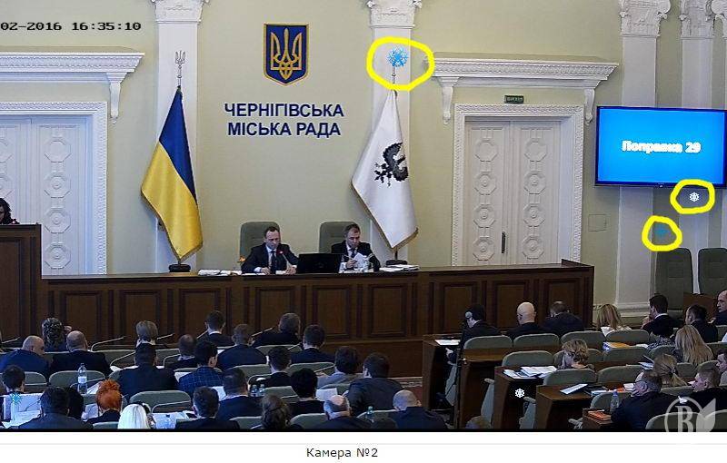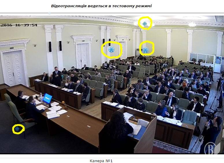 Принаймні, на відео прямої трансляції засідання на офіційному сайті міськради видно, як на голови депутатів і міського голови падають велетенські сніжинки.