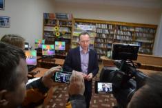 Урочисто перерізали червону стрічку міський голова Владислав Атрошенко і працівники бібліотеки.