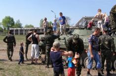 Школярам показали зразки зброї та військової техніки, яка є на озброєнні механізованого полку. Зокрема, хлопці та дівчата ознайомились з технічними характеристиками автомата Калашникова, снайперської гвинтівки «Драгунова», автоматичного гранатомета АГС-17 та протитанкового ракетного комплексу «Фагот-17». Крім того усі мали змогу відчути себе в ролі екіпажу бойових машин БМП-1 та БТРД.