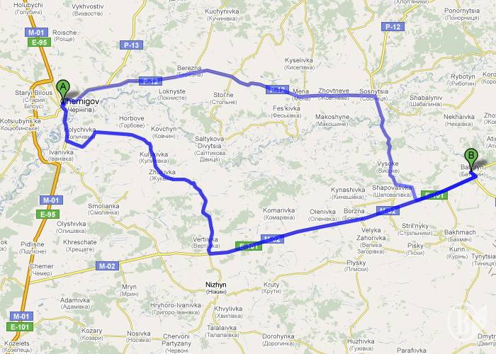 За сколько можно доехать, например, от Чернигова до Батурина? Служба построения маршрутов на картах Google считает, что кратчайшим маршрутом – за три часа, а самым длинным – наоборот будет быстрее.