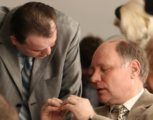 Один Дубіль (так же його?) все носиться з документами, виступає та Сашка тормошить. Отак зразу видно - хто справами займається, а хто... Слідкуємо за фоторепортажами, панове!