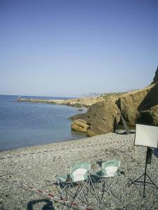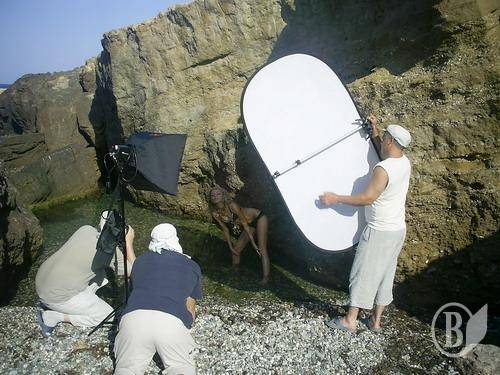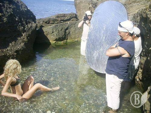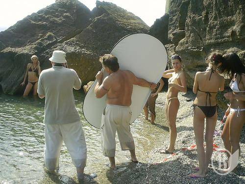 Съемки начинаются на следующий день, тем, кто в кадре подъем в четыре часа утра! Нужно сделать «мейк-ап», прическу и в шесть выезд на локацию. Место съемок за полчаса дороги в уютной бухте затерянной между скалами. «Сюда должна прийти субмарина, которая доставит девушек в Турцию», - комментирует Ричард. Море чистое и хрустально прозрачное, полный штиль, но достаточно прохладно. Съемки происходят организовано, место разбито на сектора, для тех, кто работает, для тех кто наблюдает, для подготовки и макияжу. Относительно самого позирования тоже достаточно суровые рамки – нельзя быть сильно откровенной, если в паре, нельзя касаться друг друга.