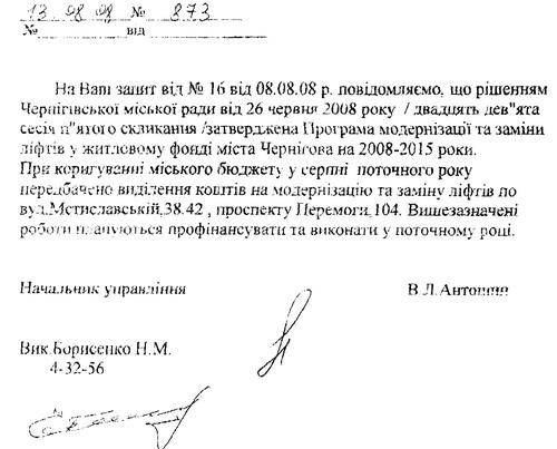 У той же час, начальник ЖРЕД №2» В.В.Пригара повідомив… що коштів на проведення ремонту ліфтів у 2008 році не передбачено. Вказані будинки знаходяться на території, що обслуговуються саме другим ЖРЕДом.
