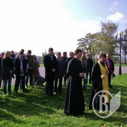 Возле Камня «Борцам за волю Украины» черниговские националисты провели торжественные собрания и помолились за всех тех, кто пролил свою красную горячую кровь на святой украинский чернозём: Красный и Черный – это цвета флага украинских националистов.