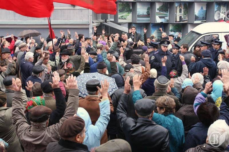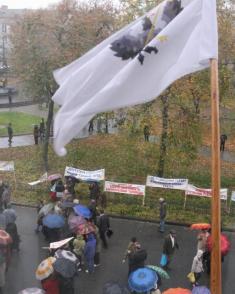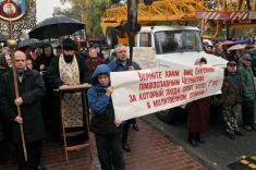 Одни пришли протестовать против повышения тарифов ЖКХ. ЖЭКи привели своих обездоленных работников с мётлами. Приперчила"праздник"одна из религиозных организаций, известная как"палатка под Катеринкой".
