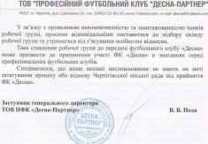 В связи с распространением представителями Черниговского городского совета неправдивой информации относительно непредоставления ООО „ПФК „Десна-Партнёр” необходимых для передачи клуба документов и существования у ООО „ПФК „Десна-Партнёр” долгов, по адресу Черниговского городского председателя было направлено письмо с просьбой опровергнуть неправдивую информацию.