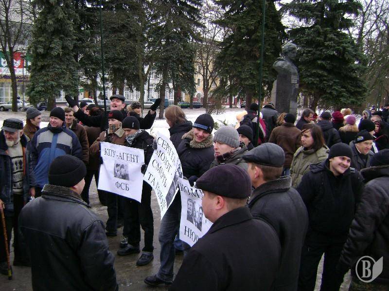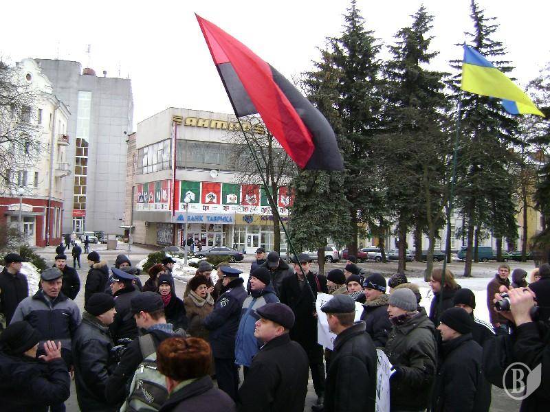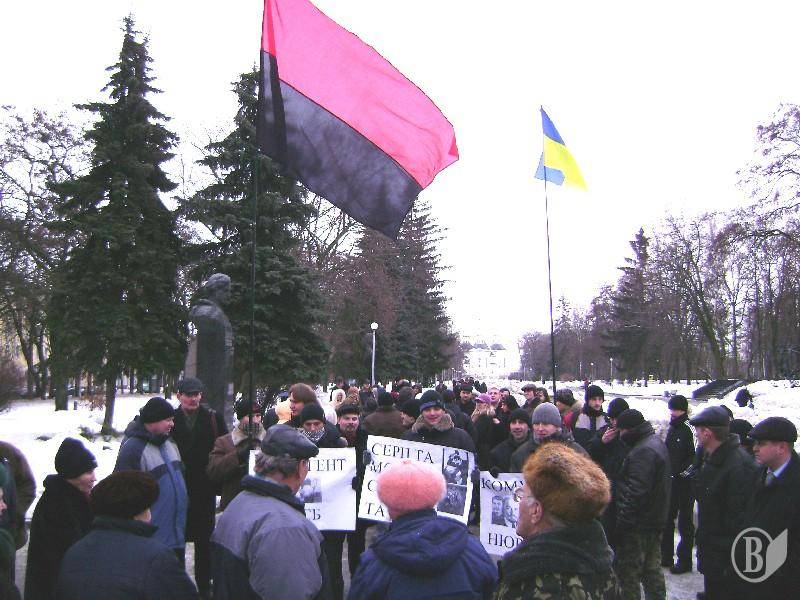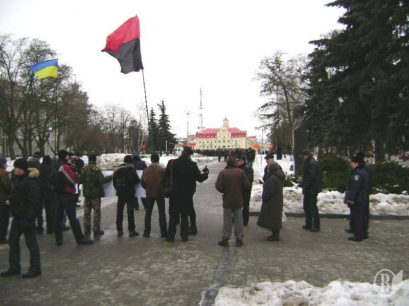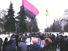 В центре Чернигова, около памятника Антону-Овсиенко, Черниговские националисты провели митинг протеста в пятницу, 30 января.