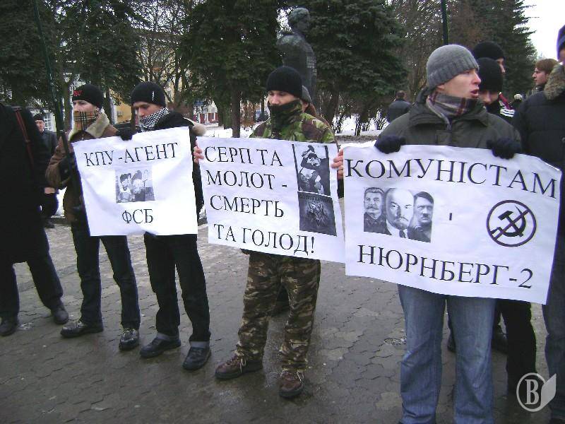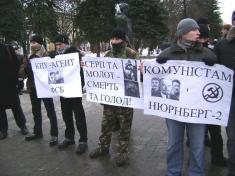Представители Конгресса Украинских Националистов и ВО «Трезуб» выразили свой протест относительно безнаказанной деятельности антиукраинских прокоммунистических партий Украины, которые своими действиями дестабилизировали политическую и экономическую ситуацию в государстве.