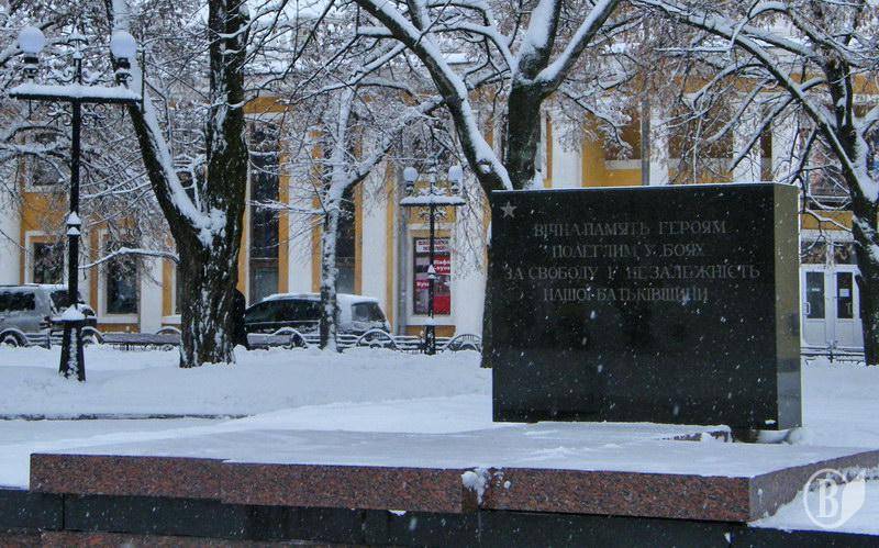 В сквере им. Попудренко в Чернигове, который ведет к Управлению Национального банка Украины, группа женщин в оранжевых робах убирает снег с могил.