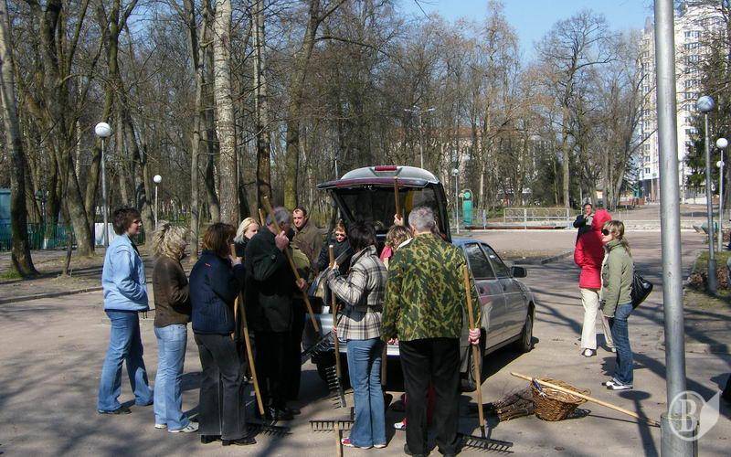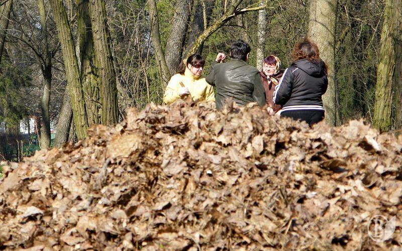 Работники некоторых отделов и управлений Черниговского горсовета организовано собрались, наверно в порыве патриотически-хозяйственных чувств, для уборки территории Центрального парка культуры и отдыха.