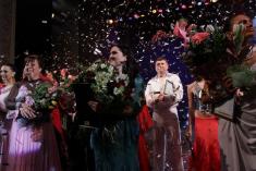 На концерте господин Голец выполнил медленный вальс. Эта пара показала зрителям настоящую «Вечную любовь». Волнение господина Виталия было немного заметным, а когда он госпожу Должикову назвал Дорожкиной – это помогло разрядить зал, снять некоторое напряжение. Оживление зрителей вызывало и другое - господин Виталий, как настоящий мужчина, мужественно боролся за инвентарь на сцене.