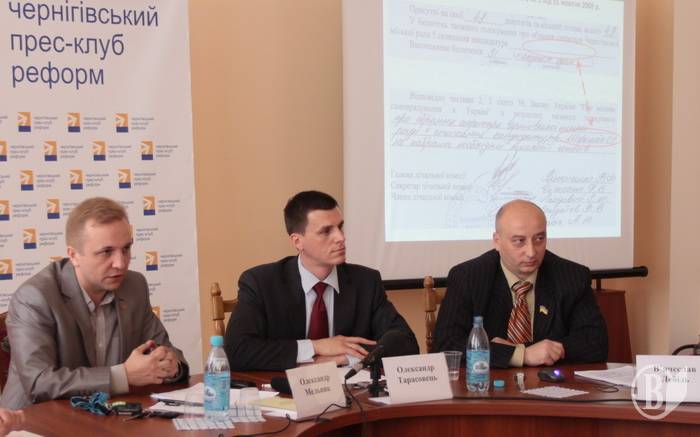 Сьогодні головний ініціатор знаття з посади незаконно обраного секретаря Чернігівської міськради Олега Шеремета, депутат міськради Олександр Тарасовець (БЮТ) зібрав прес-конференцію.